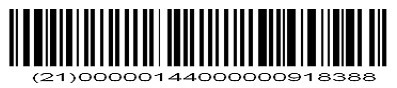 1.1 監(jiān)管碼碼制 監(jiān)管碼采用UCC/EAN-128條碼符號(hào)表示UCC/EAN-128(Multi) AI取值 21 Serial Number的一維條形碼,符合國(guó)際物品編碼協(xié)會(huì)(GS1)條碼碼制標(biāo)準(zhǔn)要求。具體碼制規(guī)范見GB/T 15425—2002《EAN?UCC系統(tǒng) 128條碼》、GB/T 16986—2003《EAN·UCC系統(tǒng)應(yīng)用標(biāo)識(shí)符》。 1.2 監(jiān)管碼表現(xiàn)形式 以00000144000000918388商品監(jiān)管碼為例,由條碼生成器自動(dòng)生成的監(jiān)管碼如下: